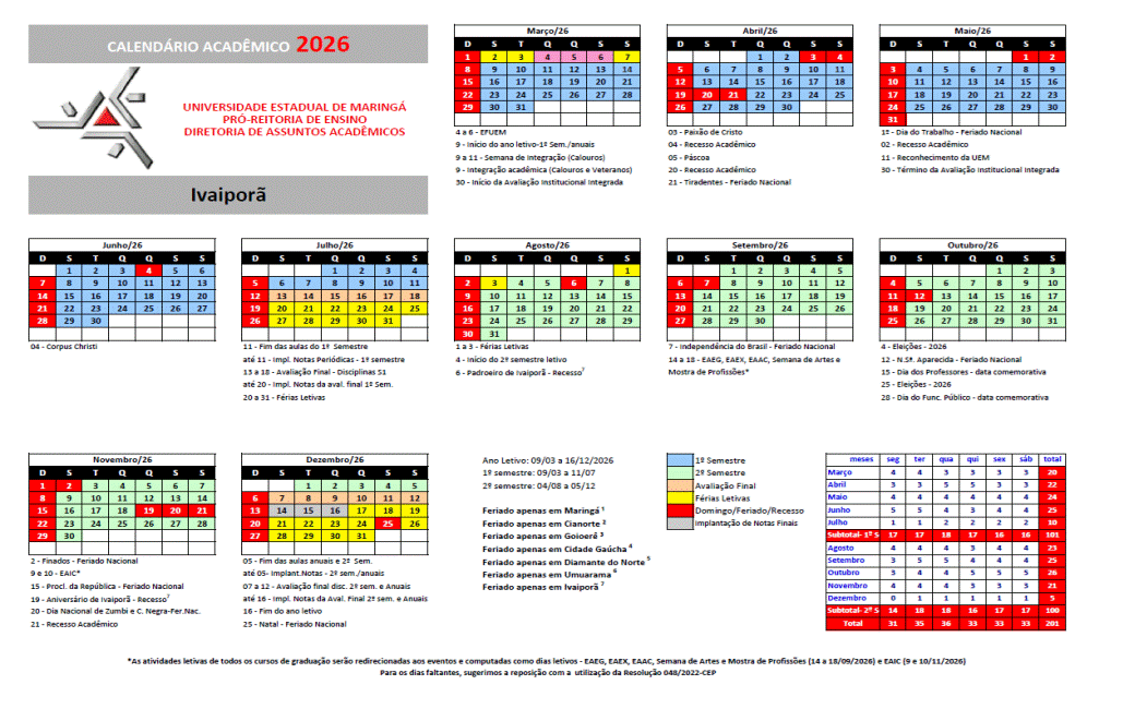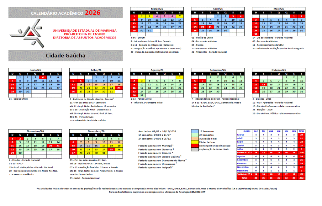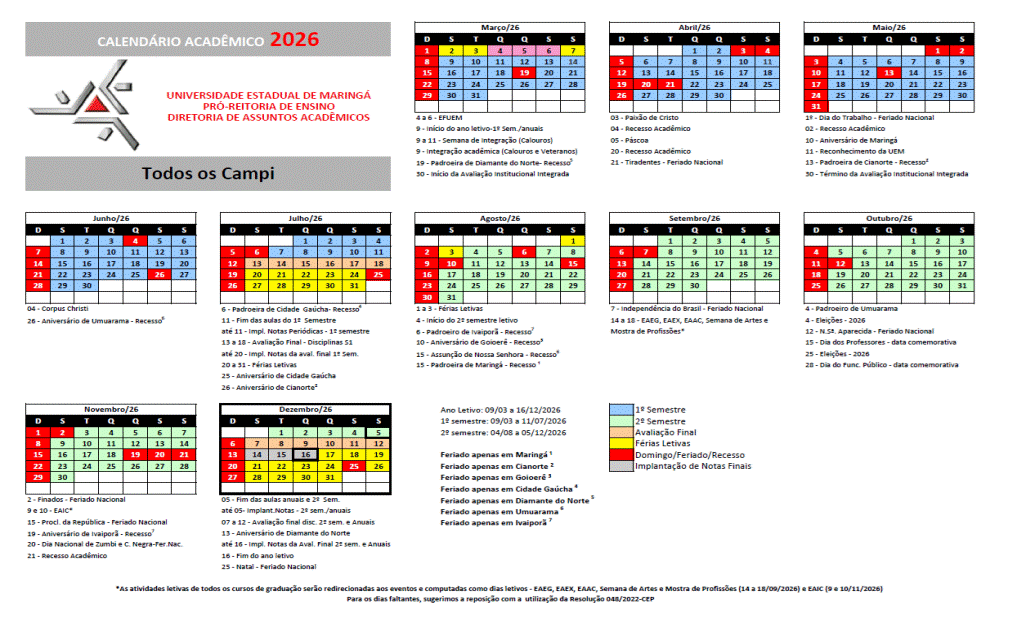 Aprova o calendário acadêmico para o ano letivo de 2026. |