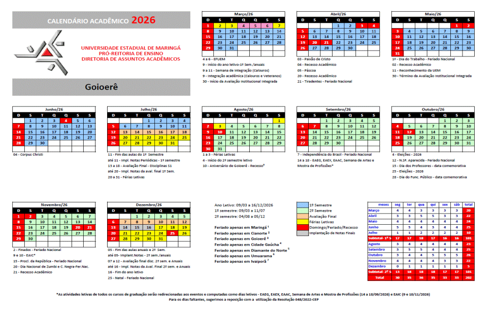Ano letivo, datas comemorativas e recessos acadêmicos